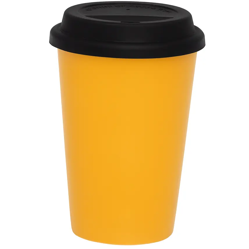 Склянка порцелянова 410 мл з силіконовою кришкою жовтий (700002433RX-N2433)