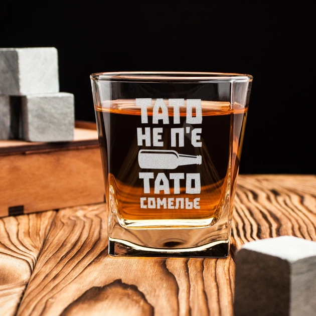 Склянка для віскі "Тато не п'є. Тато сомельє", українська, Крафтова коробка 4632272