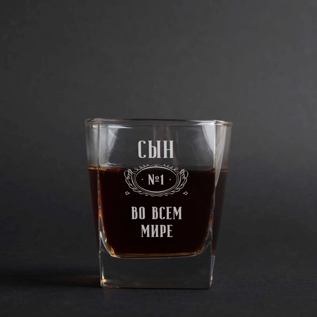 Склянка для віскі "Син №1 в усьому світі", російська, Крафтова коробка