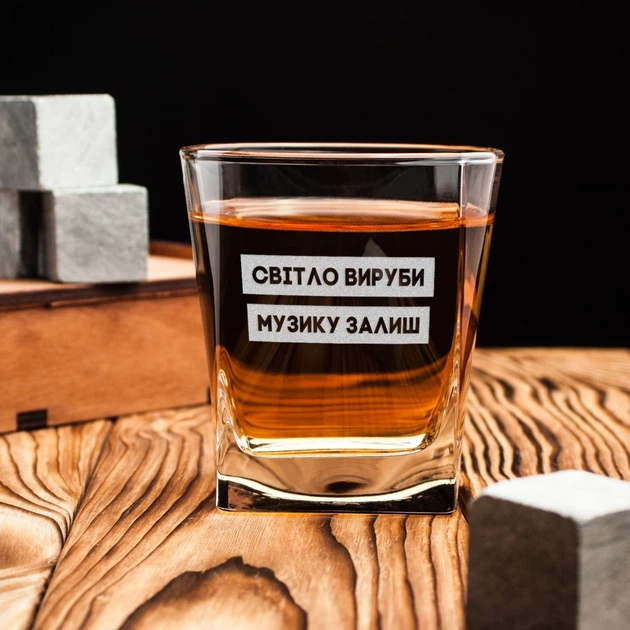 Склянка для віскі "Світло вируби, музику залиш" у крафтовій коробці