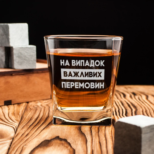 Склянка для віскі "На випадок важливих перемовин" у крафтовій коробці