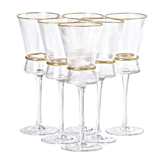 Набір келихів для вина 300 мл 6 штук з високими ніжками позолота стильний посуд для свят та вечерь (523540)