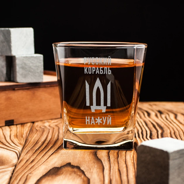 Склянка для віскі "Русский корабль" у дерев'яній подарунковій коробці з гравіюванням BeriDari (BD-SV-73) 300 мл