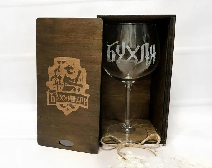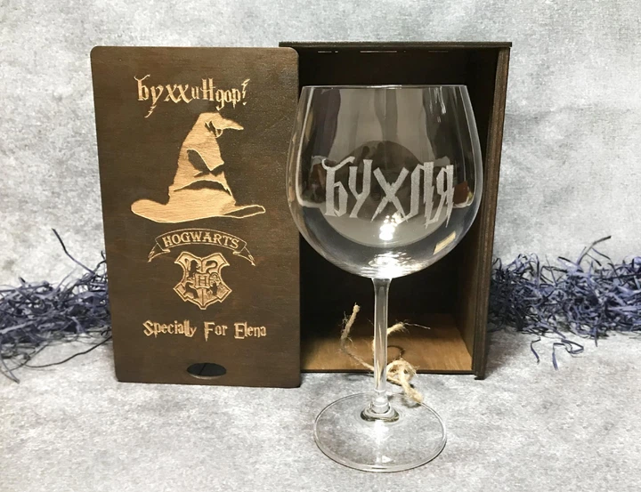 Келих Arty Craft для вина Гаррі Поттер «БУХЛЯ» у дерев'яній коробочці «Бухххіндор» (з персоналізацією) 570 мл