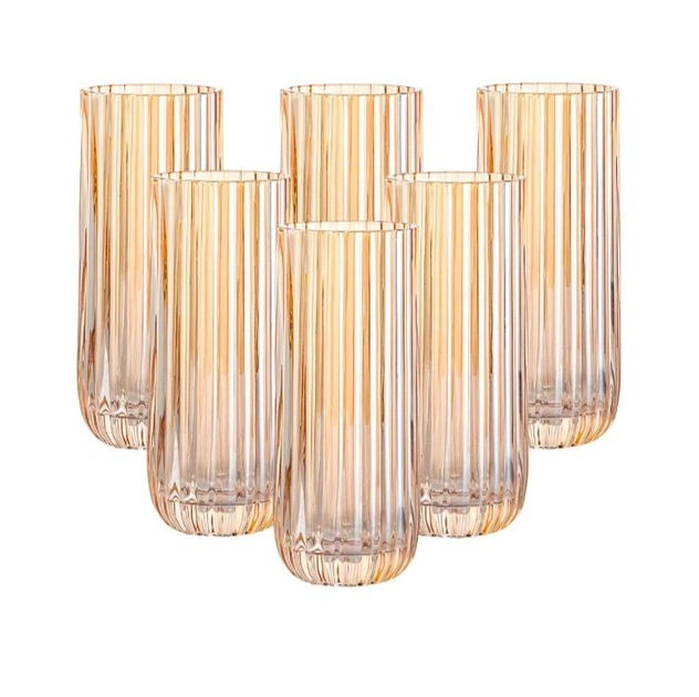 Набір склянок Lirmartur Бурштиновий високі фігурні 6 штук по 380 мл для води соку лимонаду грановані (HP525)
