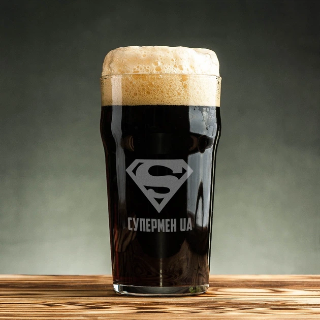 Бокал для пива "Супермен UA" у дерев'яній подарунковій коробці з гравіюванням 4599448
