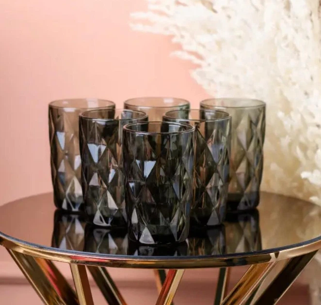 Набір склянок TS Kitchen HP033G із товстого скла високих гранованих 6 шт по 300 мл Сірий
