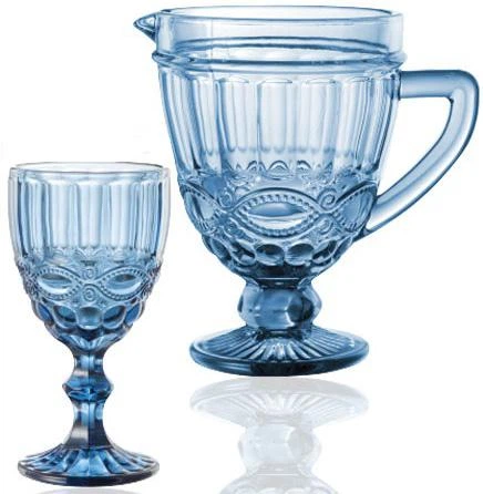 Набір для напоїв Elodia "Вінтаж" 6 фужерів та глечик, кобальтове скло 340 мл, 1,15 л S&T 000263582