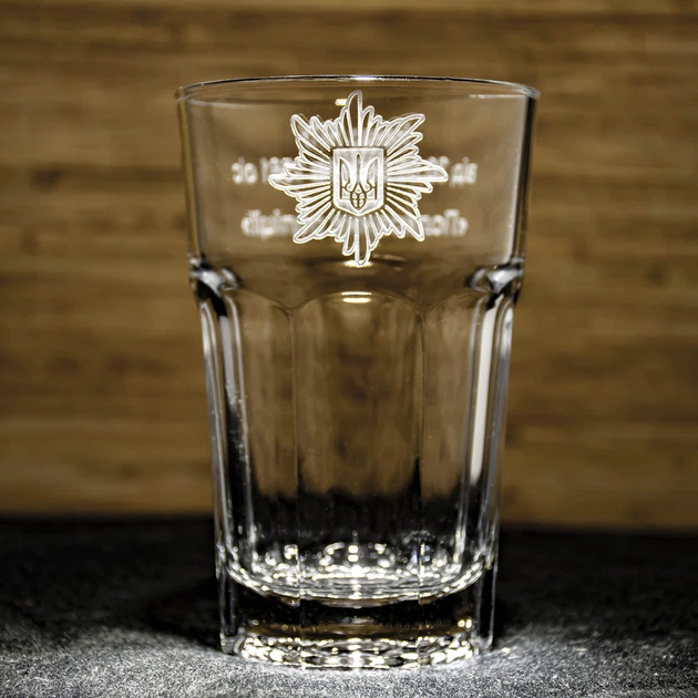 Склянка гранена офіцерська для горілки та віскі з гравіюванням емблеми Національної поліції і тексту на дві сторони