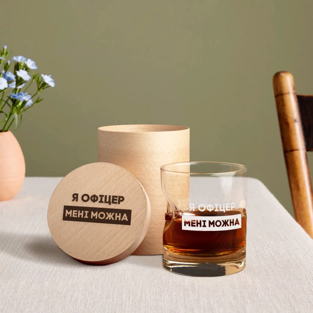 Склянка із кулею "Я офіцер мені можна" у тубусі зі шпону