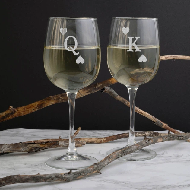 Келихи для вина парні "Король і Корольова", Дерев'яна подарункова коробка з гравіюванням 4599478