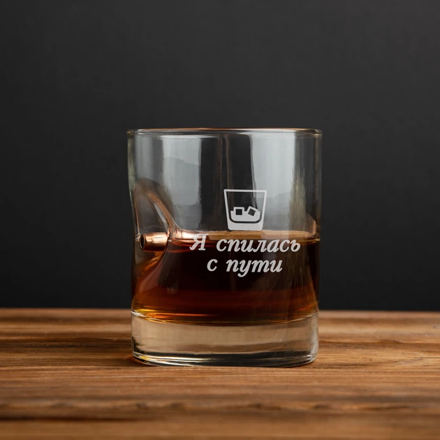 Склянка з кулею "Я спился с пути" для віскі у тубусі зі шпону BeriDari (BD-BULLET-GLASS-48) 300 мл