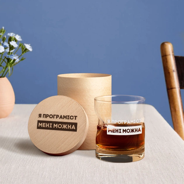 Склянка із кулею "Я програміст мені можна" у тубусі зі шпону