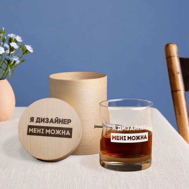 Склянка із цвяхом "Я дизайнер мені можна" у тубусі зі шпону
