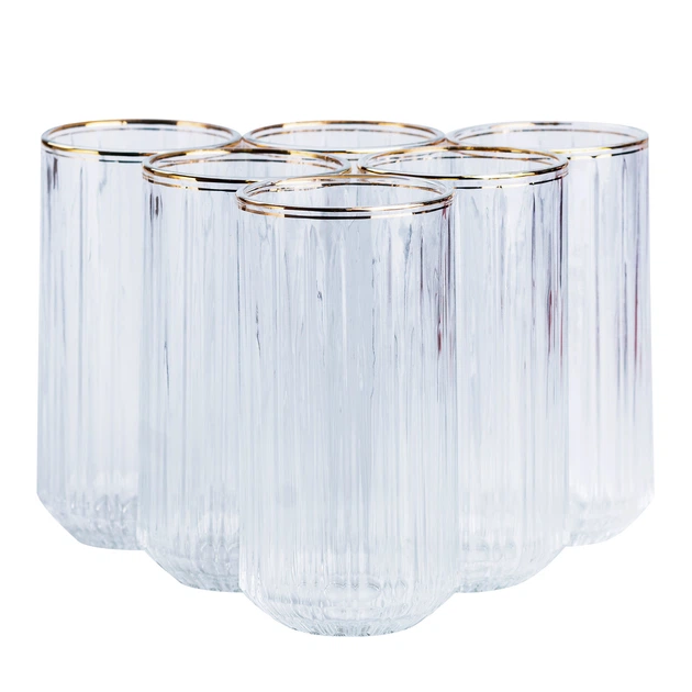 Набір склянок із 6 штук по 380 мл прозорий із золотим обідком (LG-2148787634)