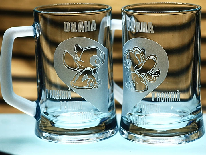 Парні пивні келихи 670 мл Ліло і Стіч з гравіюванням кружки для закоханих Іменний подарунок для пари