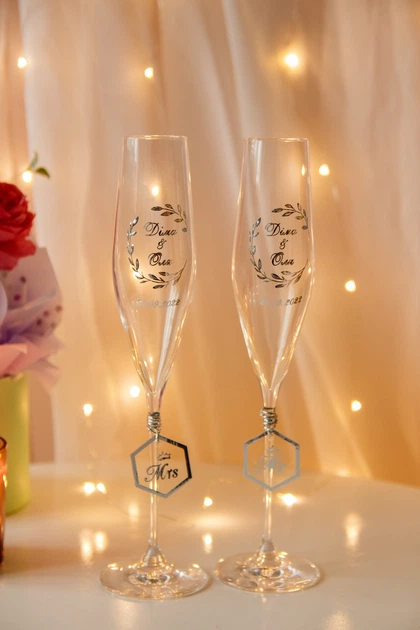 Весільні келихи з ініціалами та датою 190 мл, написи срібні (90002)