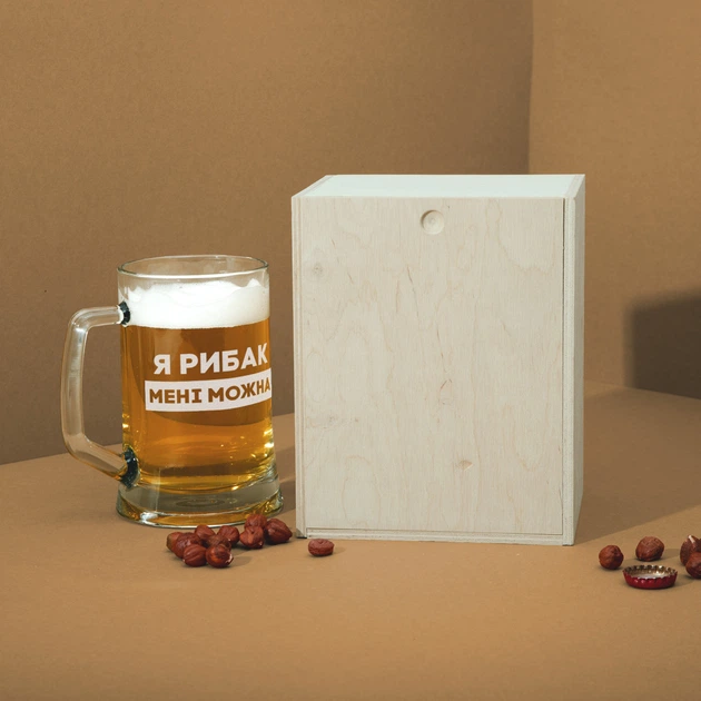 Кухоль для пива "Я рибак мені можна" в дерев'яній подарунковій коробці 4833987