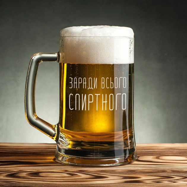 Кухоль для пива "Заради всього спиртного" у дерев'яній подарунковій коробці
