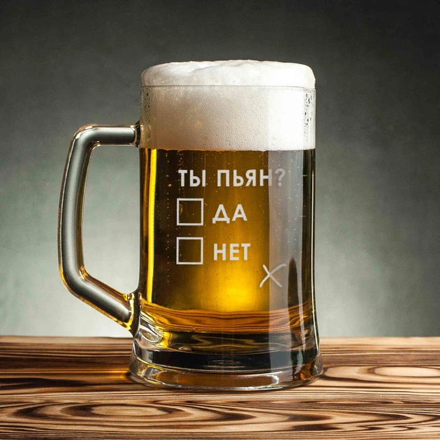 Кухоль для пива "Ты пьян?" з ручкою у дерев'яній подарунковій коробці