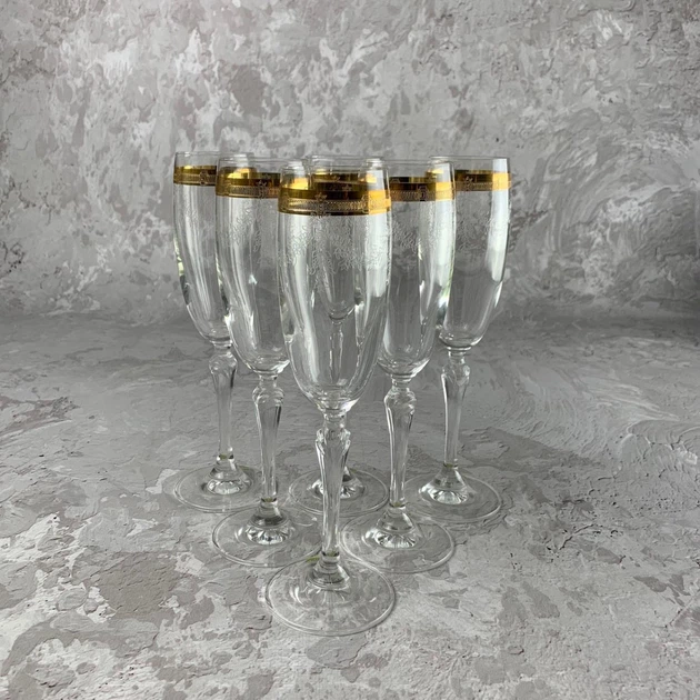 Набір келихів для шампанського 6 штук по 250 мл із золотою облямівкою (LG-2148787629)