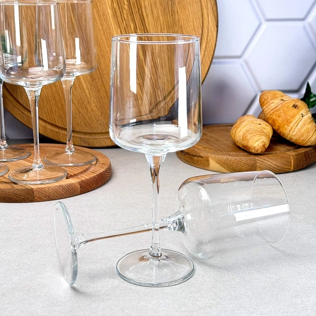 Келихи для вина на високій ніжці набір 6 шт винний келих скляний прозорий 400 мл HP-YH-44