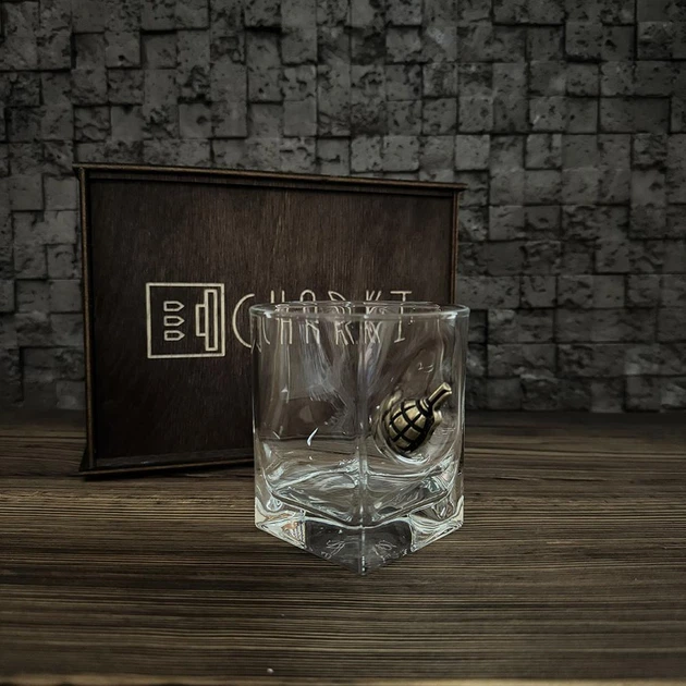 Склянка з кулею "Свікор №1 у всьому світі" для віскі, українська, Тубус зі шпону 4601903