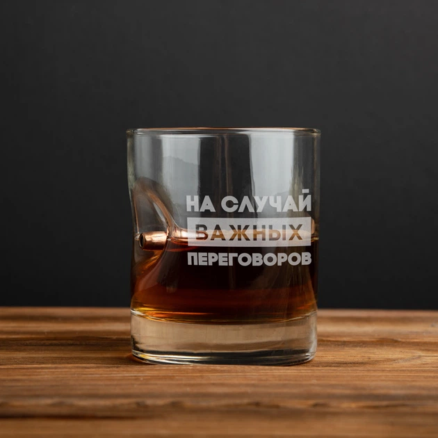 Склянка з кулею "На випадок важливих перемовин", російська, Тубус зі шпону