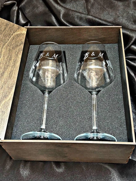 Парні келихи з гравіюванням у подарунковій коробочці з дерева