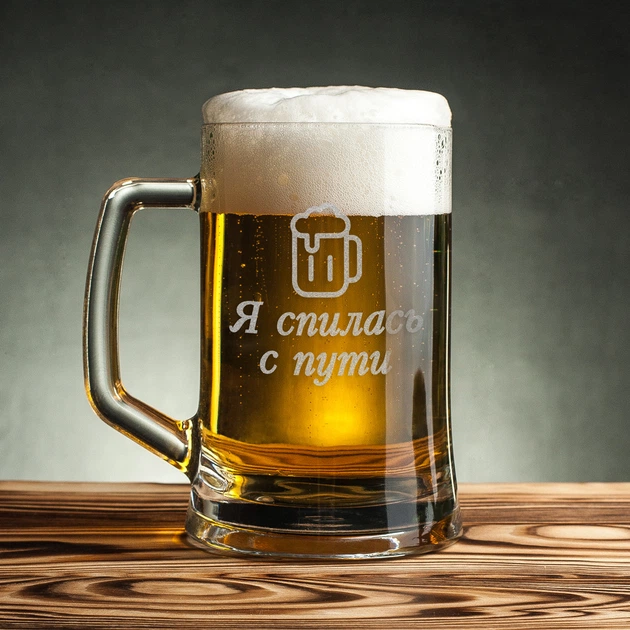 Кухоль для пива "Я спилася зі шляху" з ручкою в дерев'яній подарунковій коробці 4599902