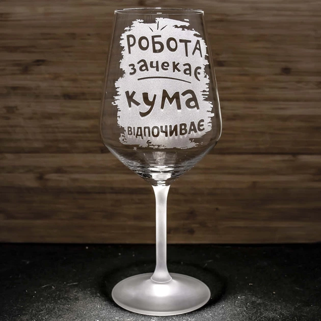 Келих для вина 550 мл гравіюванням напису Робота зачекає Кума відпочиває - прикольний подарунок для куми
