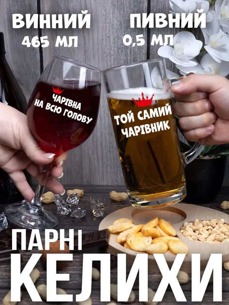 Келих пивний 0.5мл та винний 465 мл"Чарівна на всю голову, Той самий чарівник"