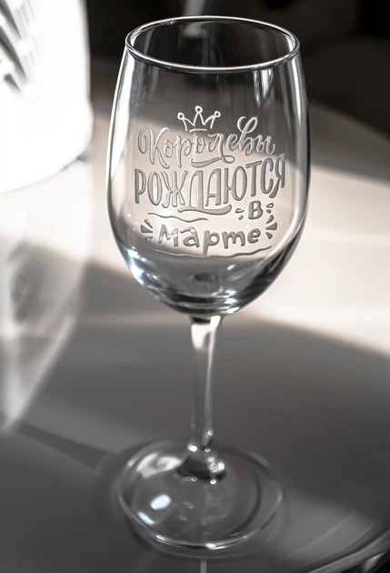Іменний бокал для вина з гравіюванням напису Королевы рождаются в марте