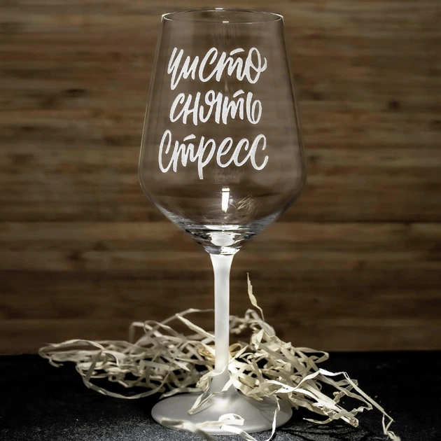 Іменний бокал для вина з гравіюванням напису Чисто снять стрес