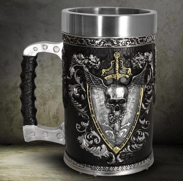 Кухоль воїна, пивний келих череп та меч, 3D чашка з черепом, колір срібло