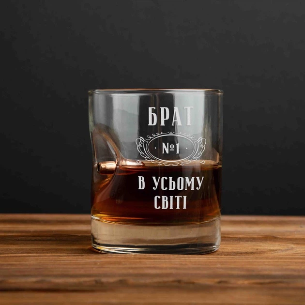 Склянка з кулею "Брат №1 у всьому світі" для віскі Дерев'яна подарункова коробка з гравіюванням PN0772