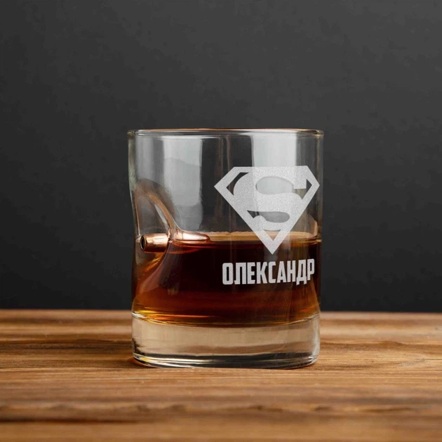Склянка з кулею "Супермен" персоналізований Дерев'яна подарункова коробка PN1027