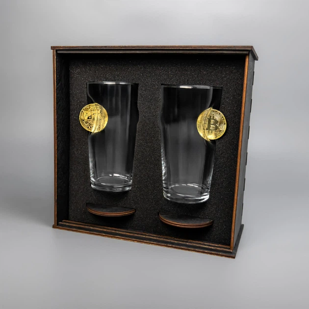 Набір келихів для пива VSKLO з біткоїном на два келиха