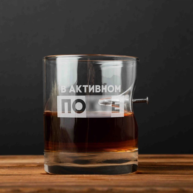 Склянка з кулею "Я спилась с пути" для віскі, російська, Дерев'яна подарункова коробка