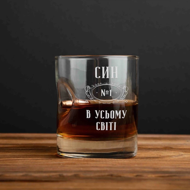 Склянка з кулею "Син №1 у всьому світі" для віскі в дерев'яній подарунковій коробці 4602266