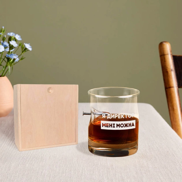 Склянка із цвяхом "Я директор мені можна" в дерев'яній подарунковій коробці 4932876