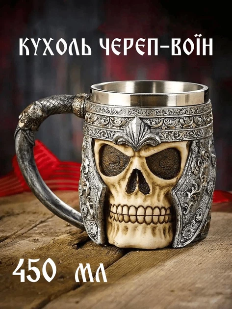 3D чашка Череп Воїна подарункова незвична сувенірна кружка 3д оригінальний пивний бокал 450 мл (CCD-004)