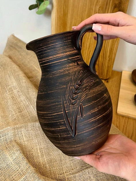 Глек з ручкою 2 літри глиняний (керамічний) різьблений Гражда Колосок