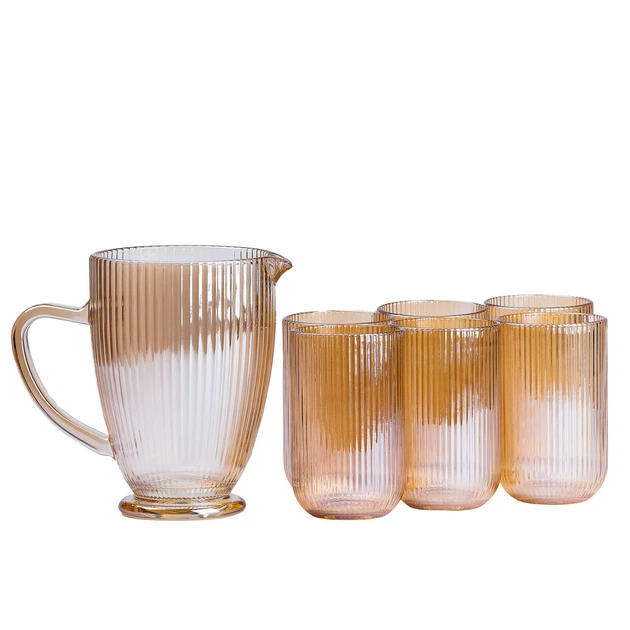 Набір скляний глечик і 6 склянок бурштиновий HP541