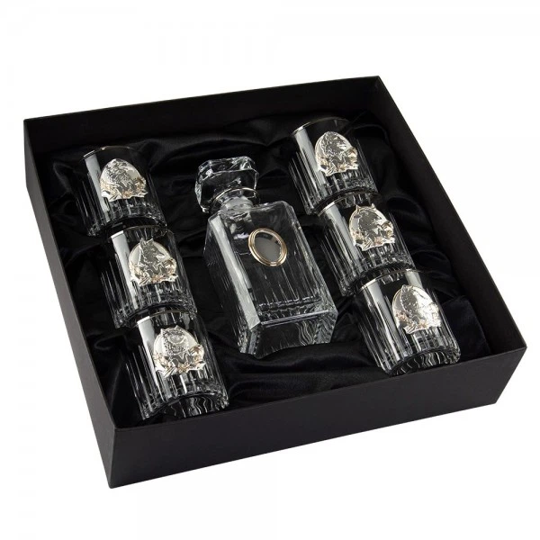 Набір для віскі Boss Crystal «Гербовий з тризубцем» графин, 6 бокалів, срібло, золото, хрусталь, захисний лак