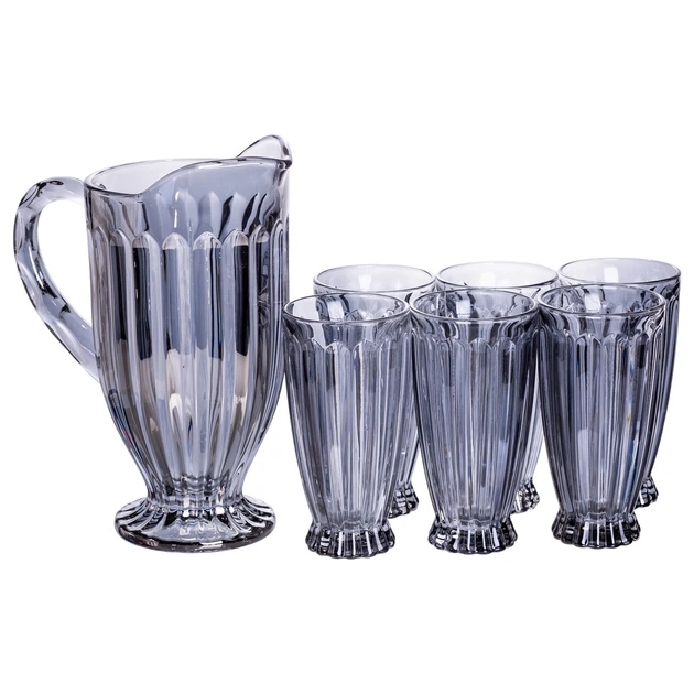 Набір глечик 1 л зі склянками 6 шт 300 мл сірий для подачі води соку лимонаду мохіто для кухні столовий сервіз (577715)