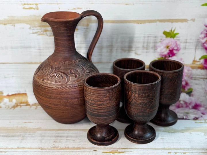 Набір "Винний" кувшин гончарний 1.5 л та 4 фужери 250мл