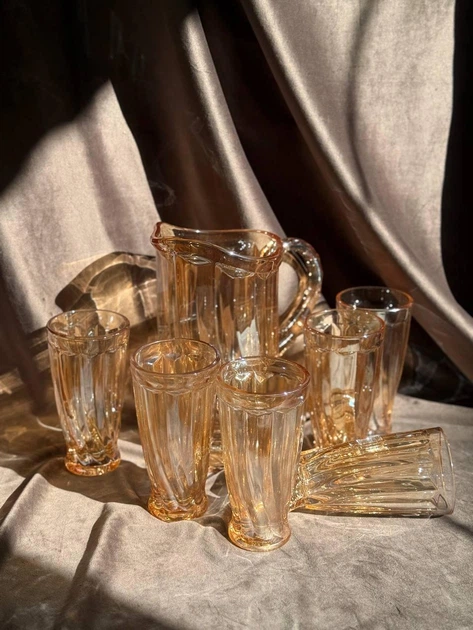 Набір питний YIWU HP-19-39-2 скляний глечик 1,1 л/склянки 300 мл 7 предметів Бурштиновий
