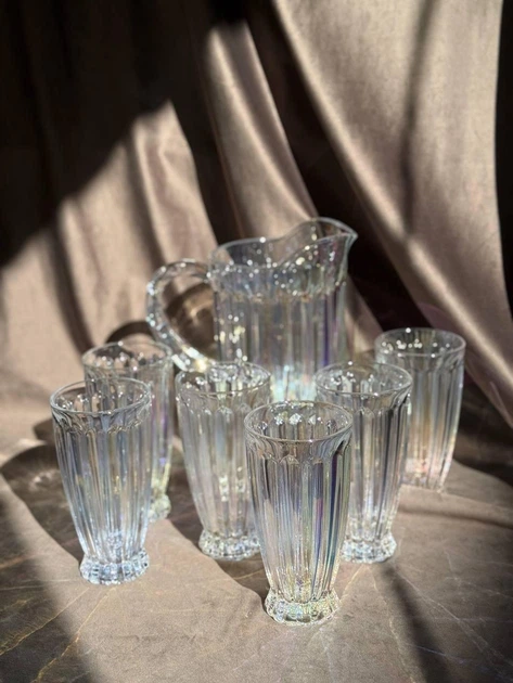 Набір питний YIWU HP-19-39-3 скляний глечик 1,1 л/склянки 300 мл 7 предметів Перламутровий