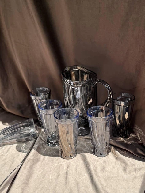 Набір питний YIWU HP-19-39-1 скляний глечик 1,1 л/склянки 300 мл 7 предметів Графітовий